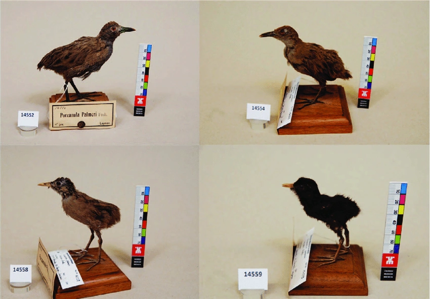 Laysan Rails were native to Laysan Island. A similar bird was also seen on nearby Lisianski Island.