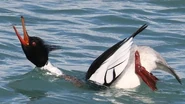 Red-breasted Mergansers dive underwater in search of a wide variety of small fish and fish eggs, occasionally capturing crustaceans as well. While they seem to prefer foraging in shallower water, Red-breasted Mergansers will hunt wherever prey is abundant, using a variety of feeding strategies, including floating at the surface, looking underwater as they go; diving in search of prey; and diving in formation to herd schooling fish such as herring.