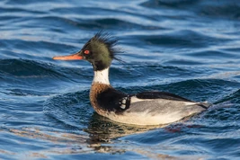 The handsome Red-breasted Merganser, also known as the "Sawbill", is a welcome sight along coastlines during the winter.