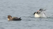 Red-breasted Mergansers are among the fastest flying ducks, clocking speeds of up to 81 miles per hour. To get airborne though, they need a running start. Their legs are positioned near their rear making it difficult to walk on land, but are an asset when diving. Red-breasted Mergansers do not defend territories and are social birds year-round.