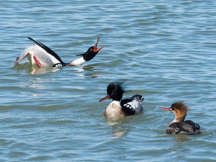 - Red-breasted Mergansers need to eat 15 to 20 fish per day, which researchers suggest means they need to dive underwater 250–300 times per day or forage for 4–5 hours to meet their energy needs.